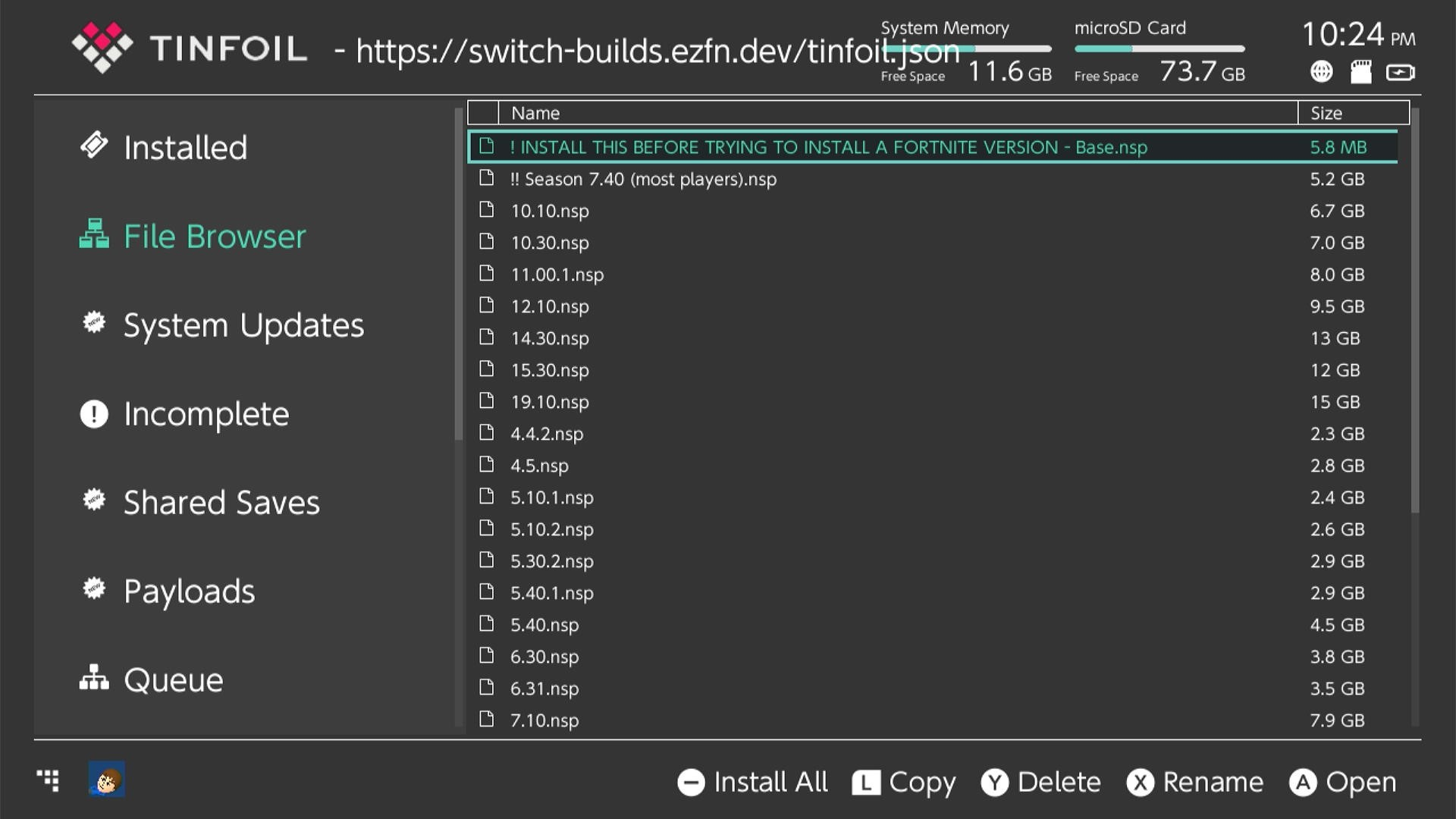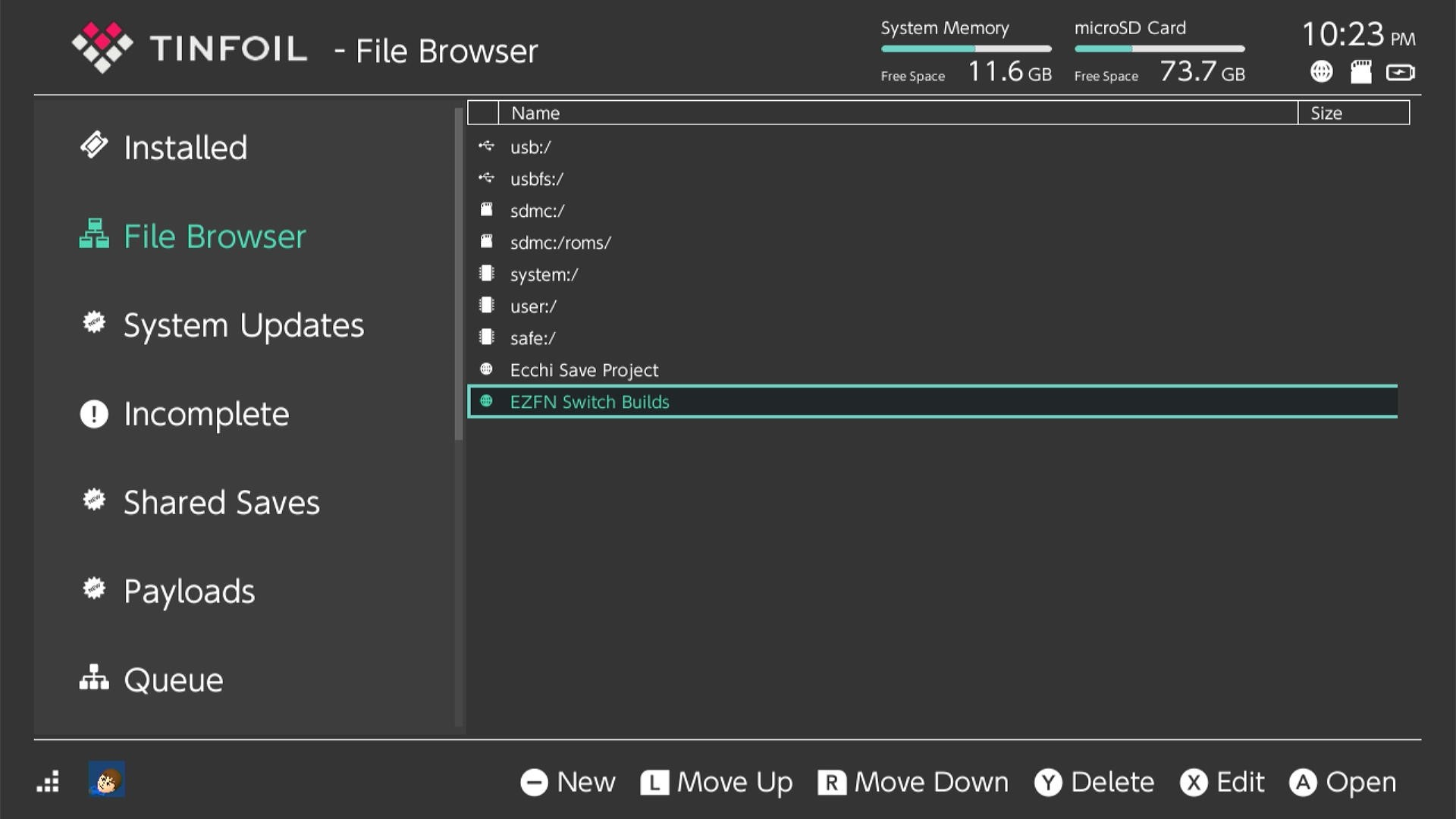 Now, go to the File Browser and search for EZFN Switch Builds, then press A