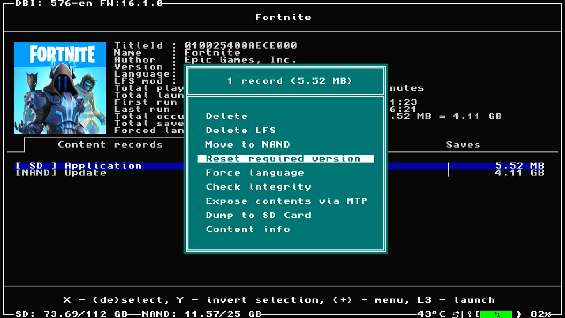 On the File Browser, select a Fortnite version that you want and follow the same process as installing Base: select your preferred location (NAND/SD CARD) and press Install.