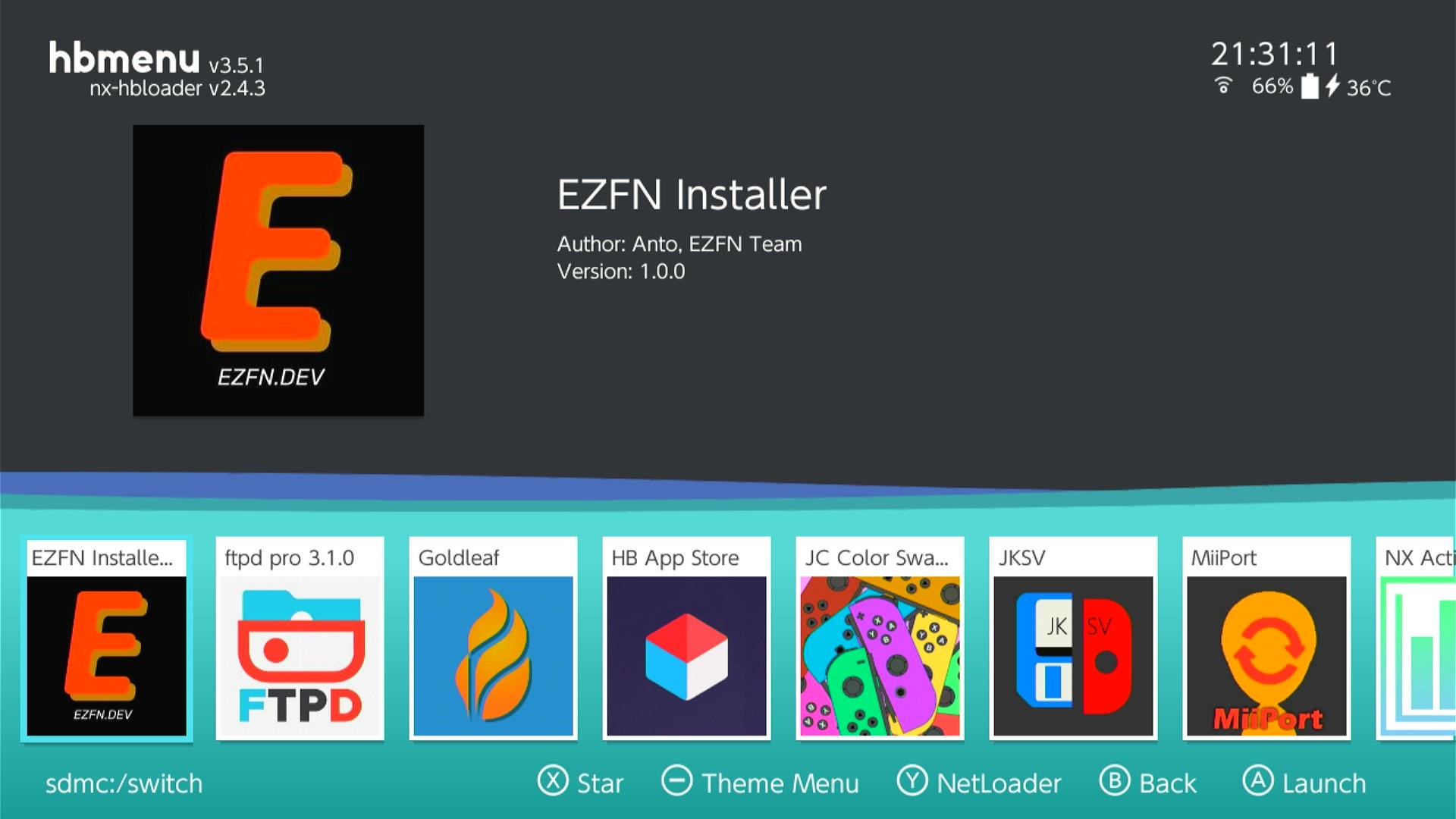 If the transfer process went smoothly, you will see the EZFN Installer in your Homebrew Menu