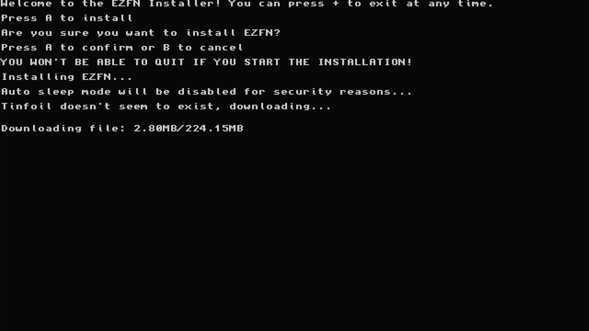 After the process is done, you will see a success message asking you to restart your Nintendo Switch, press A to reboot or B to quit (EZFN won’t work if you don’t restart!)